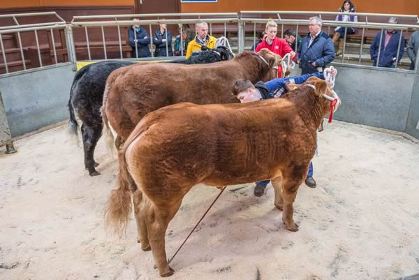 An outstanding show of Prime Cattle was placed under the scrutiny of Mr Sam Carlisle, Border Meats Lockerbie who professionally found his champion in a Charolais x Heifer 675Kg from Ben Radley, Loaningfoot selling to 300ppk or £2025 to the Judge.