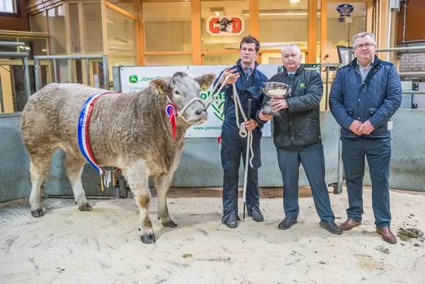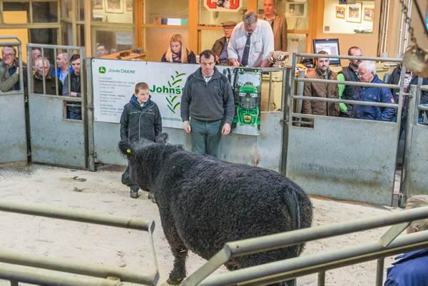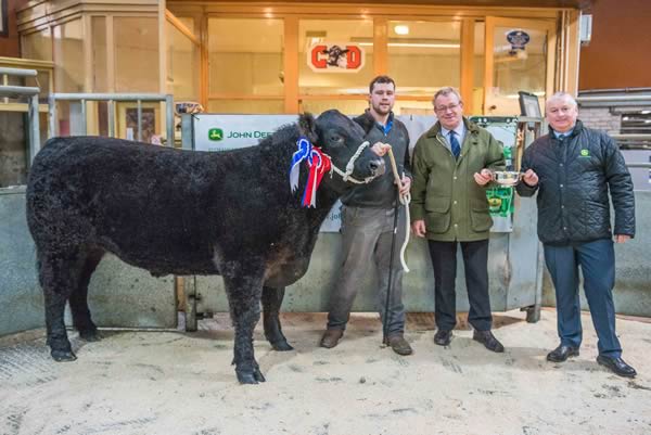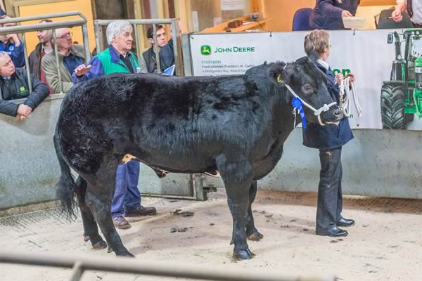 Reserve Champion rosette was awarded to Maxwellton Estate Farm, Shancastle with a Galloway Bullock also selling to Border Meats at 222p (750Kg) or £1665.