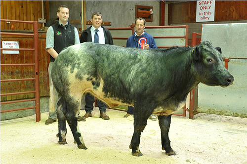 to a terrific British Blue bullock from A. & J.N. Story, Newbiggin,